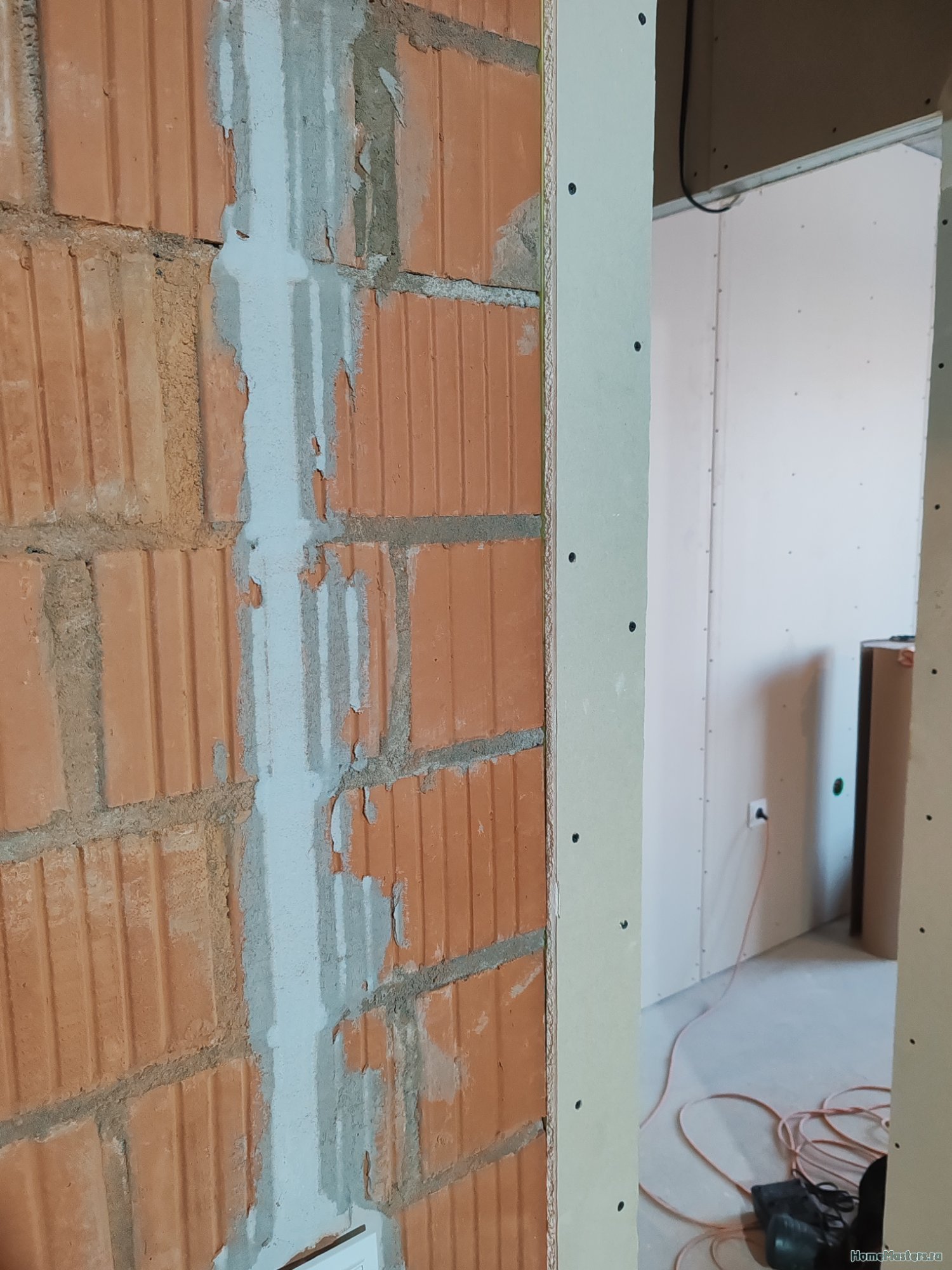 Всем добрый день. Есть стены от застройщика, помогите решить вопрос. Есть кирпичная стена к ней как продолжение прикреплена перегородка из гипрока. Повторюсь от застройщика. Стена будет выравниватся за счёт гипсовой штукатурки. Так вот возникли вопросы. 1. При ровном примыкание, как правильно отштукатурить!? Штукатур... -