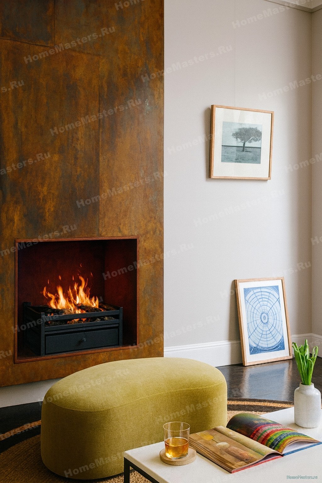 Наконец, стены с «ржавым» покрытием помогают создать атмосферу времени и истории. Они напоминают о старых заводских зданиях, корабельных корпусах или уличных конструкциях, где металл подвергался естественному воздействию. В интерьере это выглядит необычно и вызывает ощущение глубины и характера.