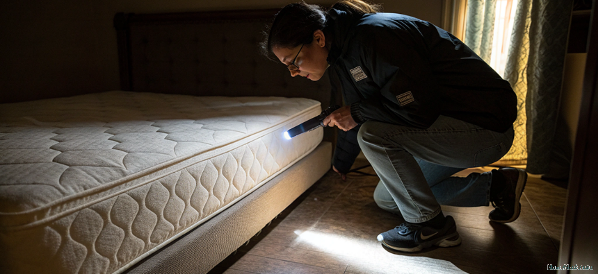 - Осмотрите кровать, матрас, изголовье и плинтусы.