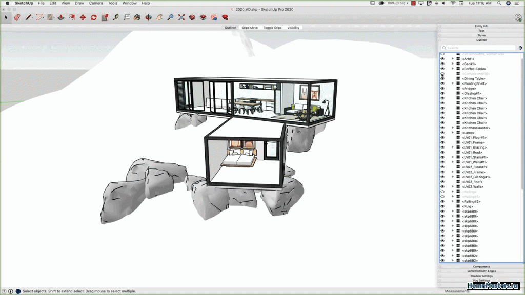 SketchUp Pro — инструмент для быстрого трехмерного эскиза: он помогает за короткое время собрать объем, проверить пропорции, идеи планировки и пространственные связи без тяжелого порога входа. Это удобно на ранней стадии, когда важнее скорость мысли, чем идеальная «рабочка».