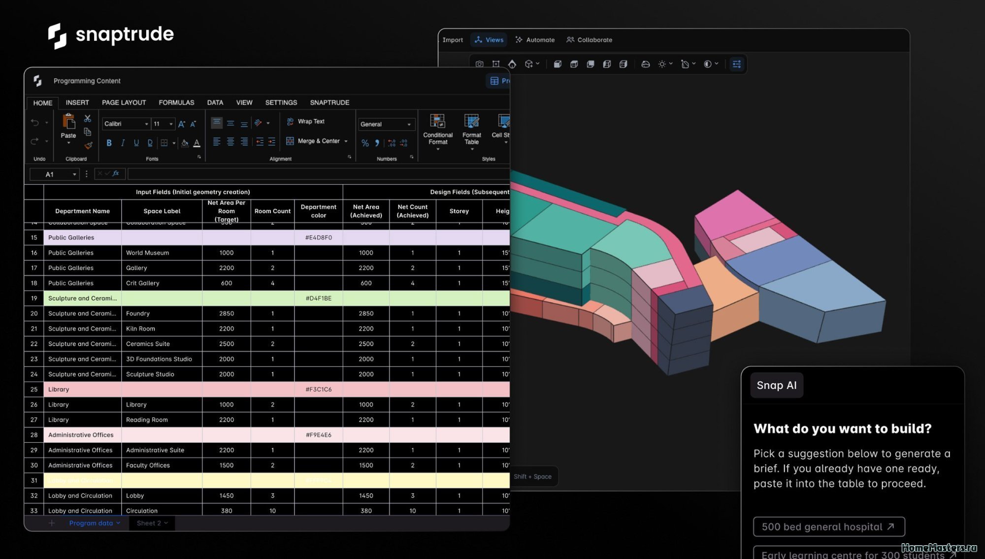 Snaptrude — облачная BIM-ready среда, в которой удобно быстро собирать концепцию и одновременно держать структуру модели. Сильный сценарий — ранняя стадия: несколько вариантов планировок/объемов, быстрые итерации, наглядные виды и минимальный «файловый хаос».