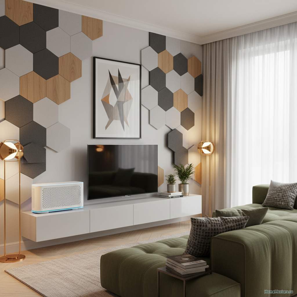 Жилые интерьеры: В квартирах-студиях, где объединены кухня и гостиная, панели помогают зонировать пространство акустически. В домашних кинотеатрах они не только улучшают звук, но и защищают от жалоб соседей.