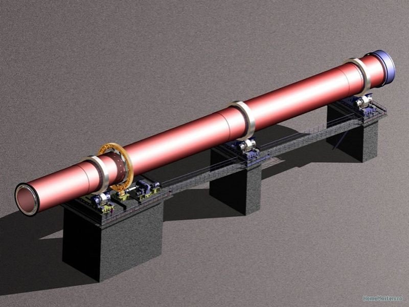 Печь медленно вращается, перемешивая сырье. Скорость — от полуоборота до 5 оборотов в минуту.