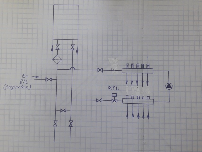 Дима, да нет же. Двухходовой термический клапан с RTL-головой, как раз включён в схему для возможности локальной регулировки температуры теплоносителя, протекающего через контуры водного тёплого пола. Какую температуру установить термоголовкой, такая и будет поддерживаться. Мне так кажется....- 16 ответов
