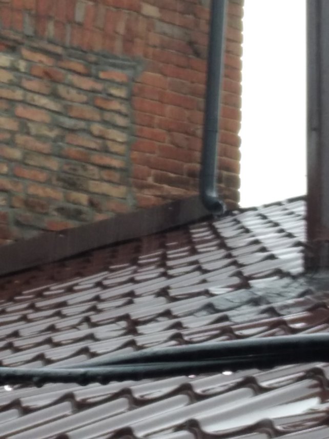 Добрый день! С прилегающей стены, с крыши 2-этажного дома на мою крышу организован слив воды из 2-х труб диаметром 100 см в одну линию, с краю стены. Мой желоб (меньшего диаметра не справляется). При уровне дождя примерно 4 балла из 10, ка...