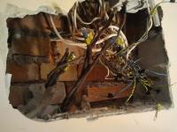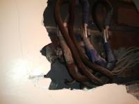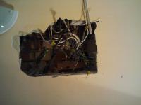 Продолжение...Ну как я уже говорил оба щитка мы достали, и часть старого и новый целиком...За новым щитком нашлись недоступные соединения проводов, по типу скрутка...Старый паук проводов Детально...Соединения медь-алюминий) класс!!!Ну а теперь уже берём щиток на 24 модуля, ставим клемники для силового кабеля, руби...