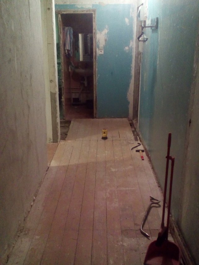 Всем привет. Пытаюсь выровнять имеющиеся деревянные полы. Всей истории насколько ужасно завалены плиты расписывать не буду. Уровень старого дощатого пола у порогов кабины поднимается на 3 см. Плюс будет фанера 8 мм и ламинат. Коробка дверей будет ставиться соответственно на весь этот пирог. Значит мне придётся проём сверху спиливать ...