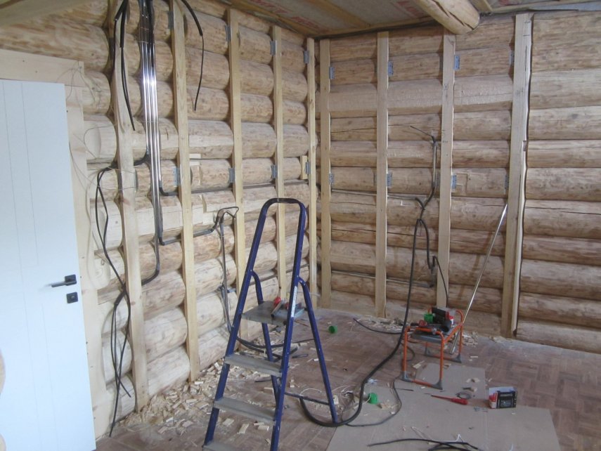 Тоже способ скользящего крепления (попадался мне на объекте), но для обшивки бревенчатой стены. Трубы относятся к другой теме (электрика).- 1 ответ