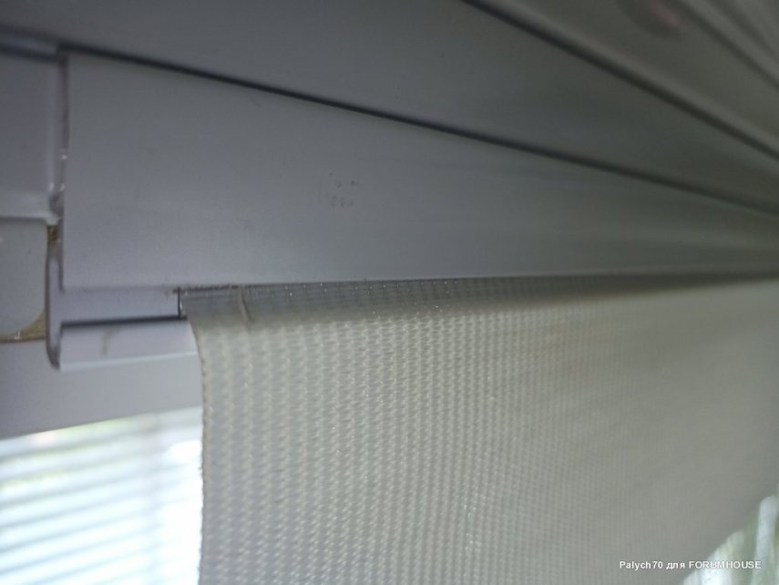 Девять лет висит рольштора-зебра. Недавно заметил, что ткань начала выпадать из подвижного алюминиевого держателя (см. фото). Ткань там на клею держится или за счет расплавления? Как лучше отремонтировать: вытащить всю ткань, немного подрезать и приклеить? Какой клей использовать? Чем резать?...