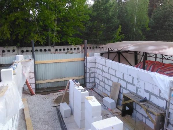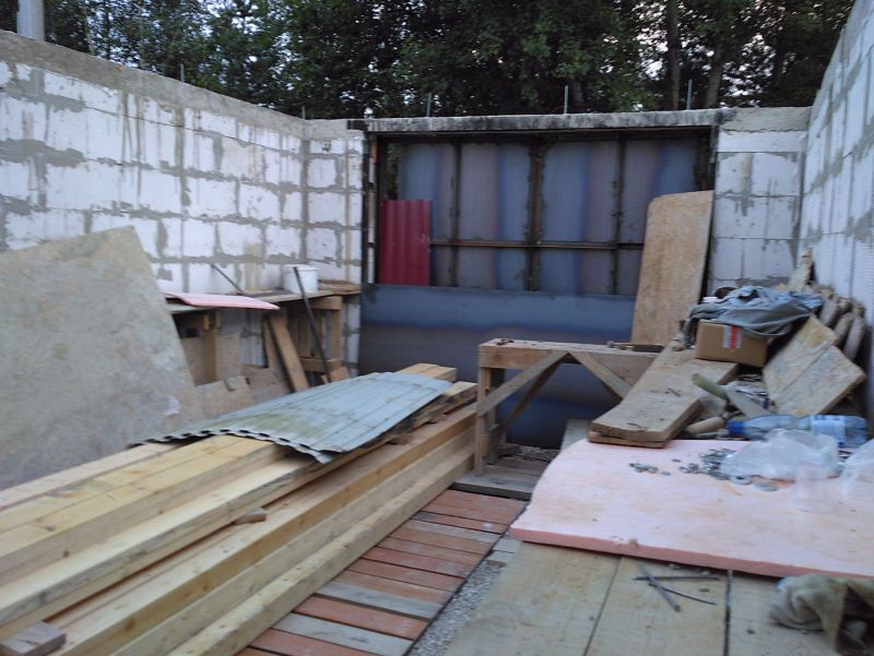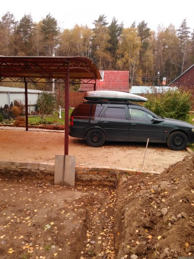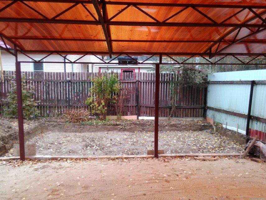 На даче строю гараж. Имею ряд вопросов с рядом фото. Если посоветуете, пкоритикуете - буду рад. Итак, поехали: Выполнен фундамент 40х40 со сваями на 1,5 м. Смотровая яма со стенами с 15 см. Поставлена коробка из ГСБ 60х30х25. Думется про крышу. Здесь море вопросов....