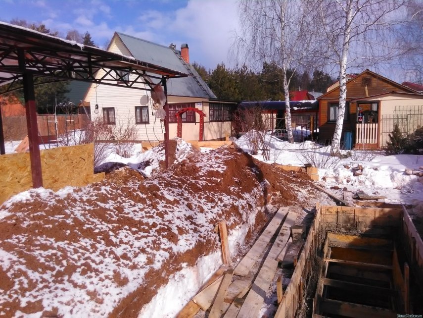 Начнем с того, что разметка под фундамент начиналась в стеснённых условиях. С трёх сторон постройки и заборы, с четвёртой - зелёные насаждения. Территорию под постройку выделили буквально выгрызая самнтиметры от участка, и вроде бы вписались. После того, как пробурили 12 лунок под сваи, и у...