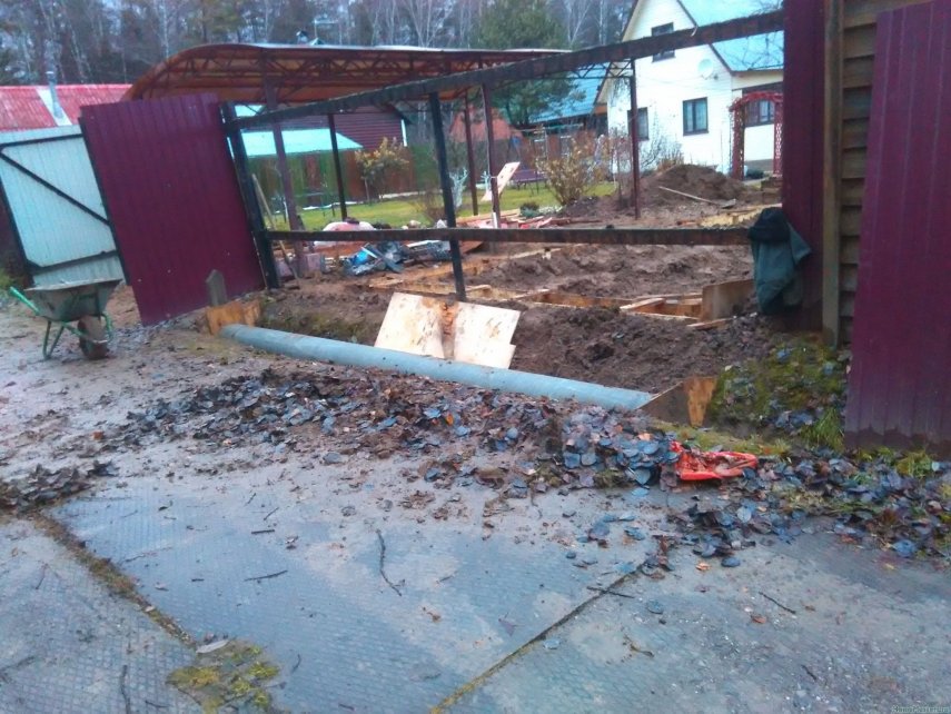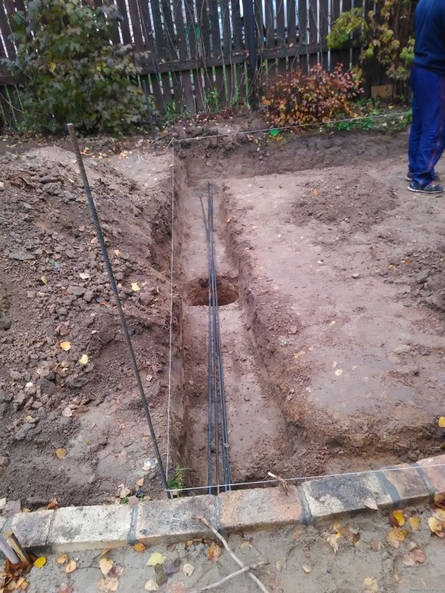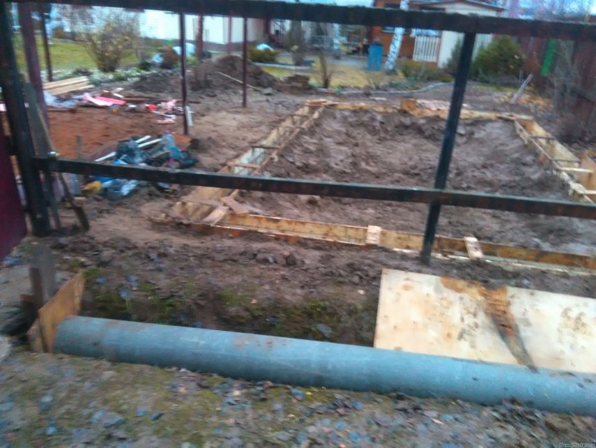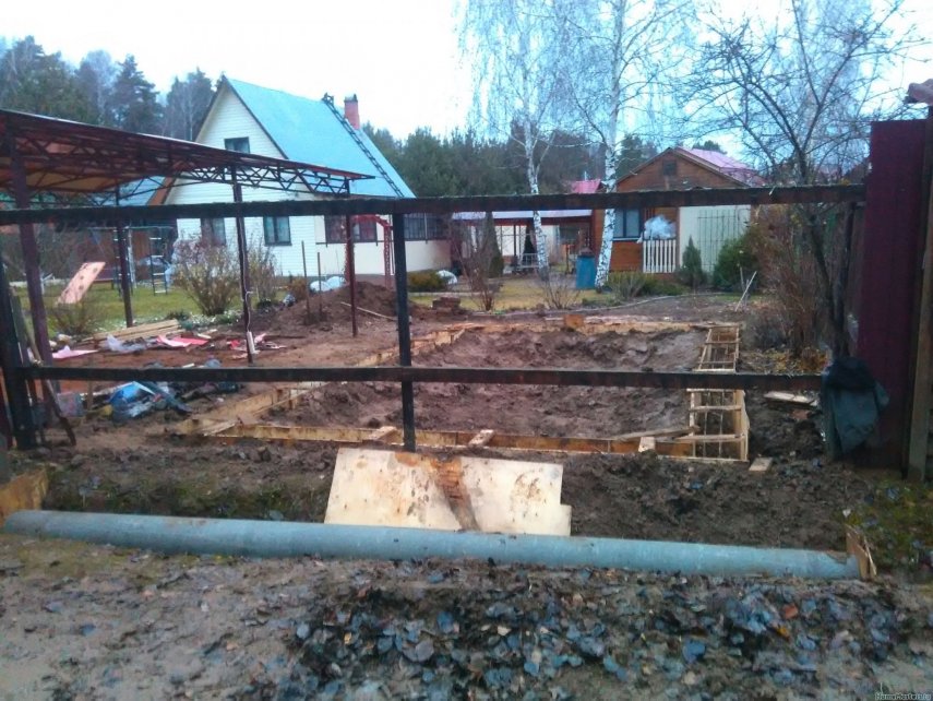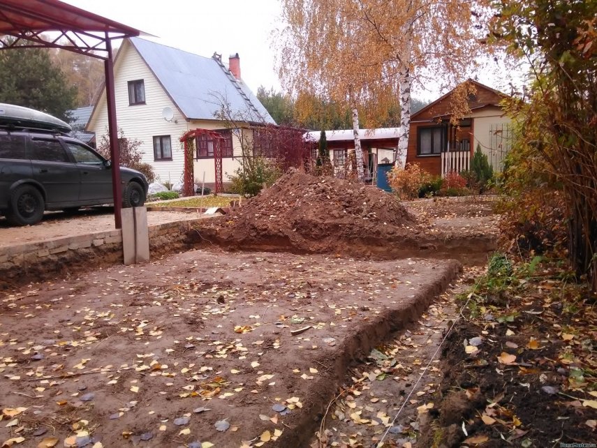Пришел помент заливки фундамента. Однако, перед забором, в месте будущег овъезда в гараж, была канава и перепад высот в 40-50см от дороги. Потому заранее прикуплена труба асбестобетонная 5 метрво на 30 см и уложена в канаву. Заказан бетон М350 (с расчетом того, что всё равно могут пр...