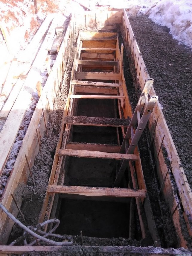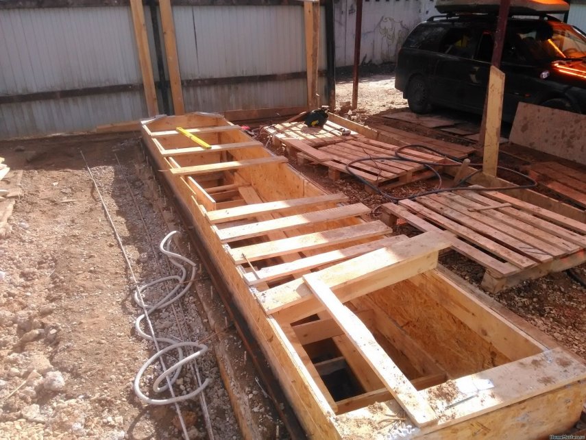 Смотровая яма размер: 5500х1000х1830. Стены бетон на гравии М350 150мм с армированием А3-10. шаг 300. Плита под стенами бетон с армированием одним рядом. Под неё гравия 20 см и 20 см песка....