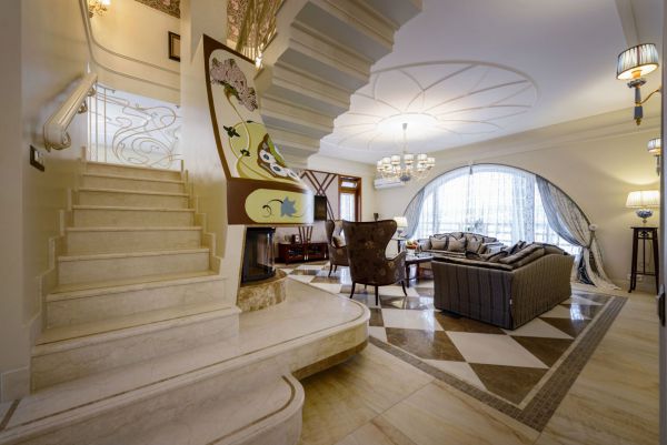 Завершена работа над новым проектом по дизайну дома. Для него был выбран необычный стиль - модерн. Дело в том, что изначально дом был выполнен в стиле Hi-tech, а это абсолютно не соответствует внутреннему миру хозяйки дома. Она сама по себе натура романтичная...