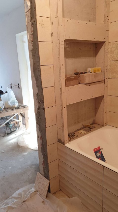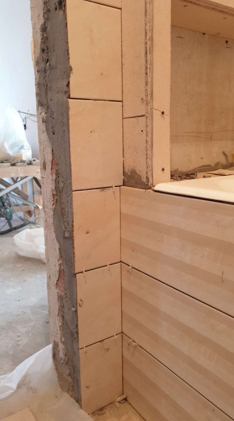 1. Добрый день. Понимающих людей прошу совета: Внутренний угол в ванной (см. фото) - первые 3 ряда в плоскости двери положили "на" плитку плоскости ванной, а остальные "под". Ремонтники говорят, что после затирки все будет нормально. Но я как то не представляю как это тео...
