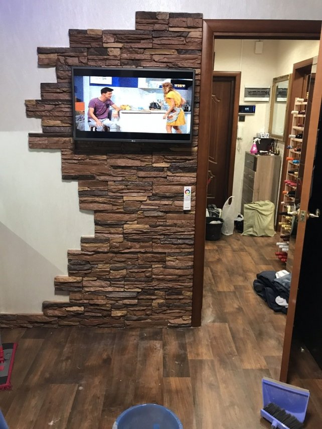 То, что получилось видно на фото. Разумеется это не для тех, у кого "дизайнерский ремонт", но для обыкновенной квартиры вполне подходит. Недостатков не замечено, животных и людей всё устраивает .