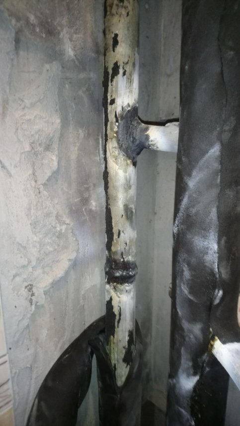 1. Добрый день! Вчера заменили Стояковые трубы ГВС и ХВС в рамках капитального ремонта. Делали одновременно с соседями сверху и снизу. Сначала надели чёрный чехол. Я его содрала, чтобы был понятнее мой вопрос. Полотенцесушителя у меня вообще до этого не было. Установили новый за счёт кап.ремонта. ...