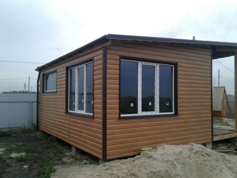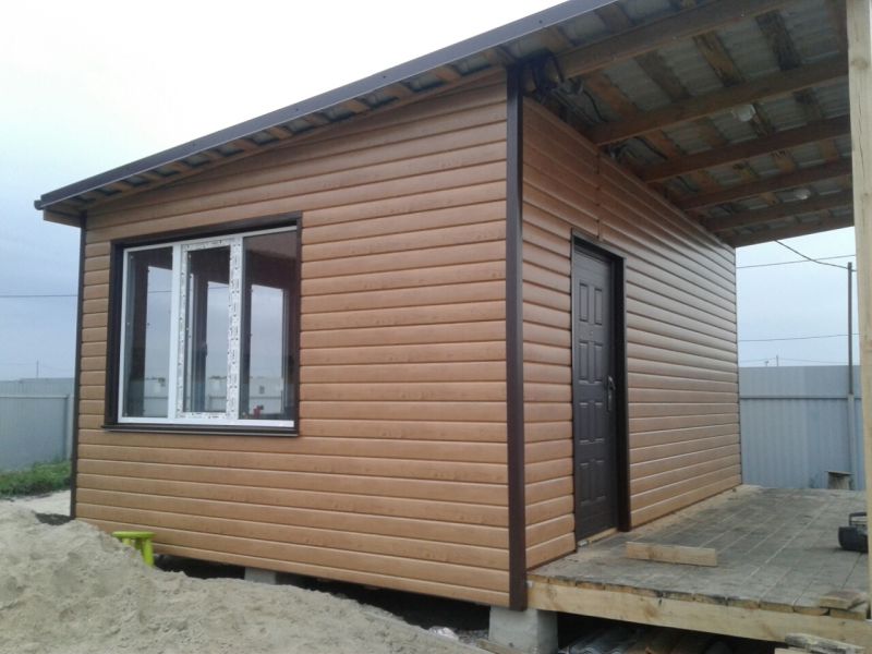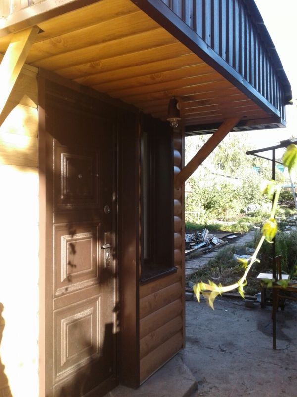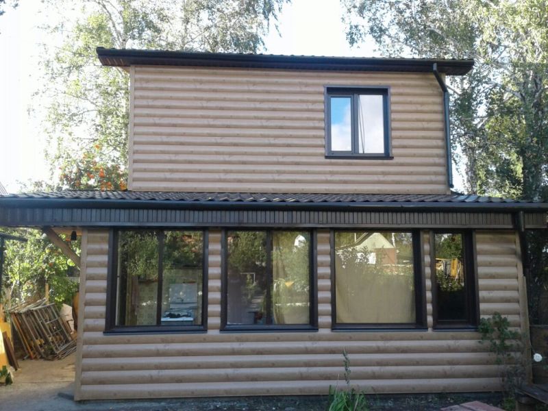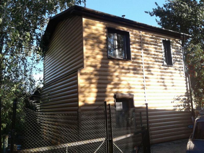 1. Садовый дом , сад Чайка-1. Отделка фасада металлическим сайдингом под бревно цвет сосна с утеплением. Карниз подшит профнастилом С-8 цвет шоколад. Установлена водосточная система Дёке, цвет шоколад. Садовый домик в п. Солнечный берег. Для крыши использовали металлочерепицу Монтеррей цвет шоколад, для отделки фасада металлоса...