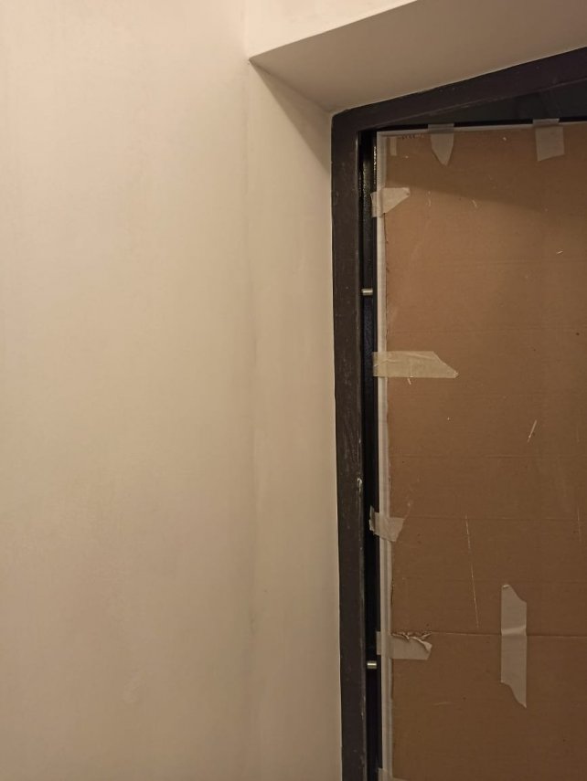 1. Здравствуйте. Заштукатурили откосы входной двери, и с одной стороны (слева) получается как-то нехорошо. Не знаю, что делать, помогите советом. Чтобы закрыть крепления коробки двери, не получилось сделать стену плоской, пришлось делать загиб, что образовало очень тупой угол. Возникает вопрос, как этот угол сделать так, чтобы в...