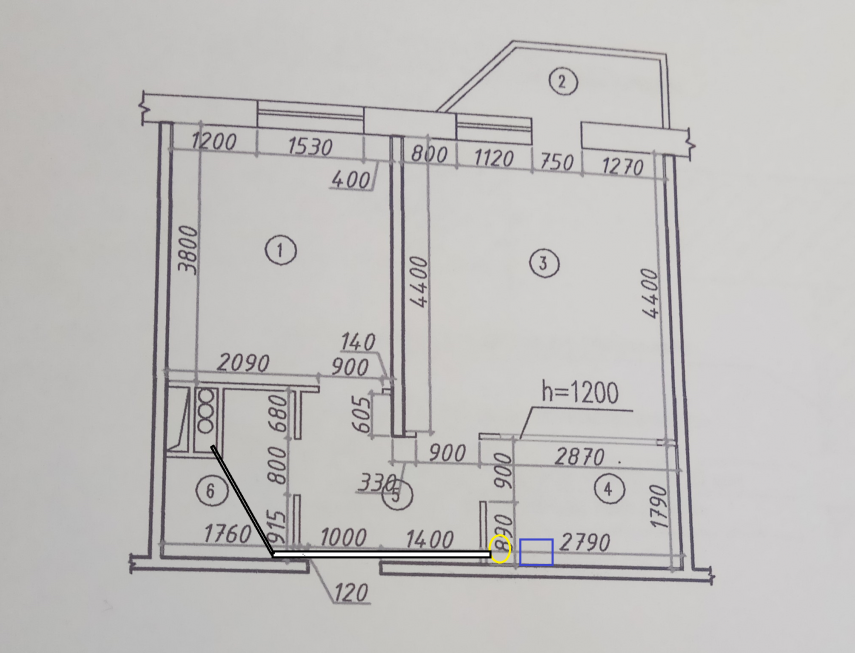 7. Подскажите пожалуйста, можно ли так перенести кухню. Какие материалы использовать для проведения канализации и воды, Можно ли утопить водводку системы в стене.В доме канализация доведена счетчика. Этаж 11. И необходимо ли переносить батарею отопления....