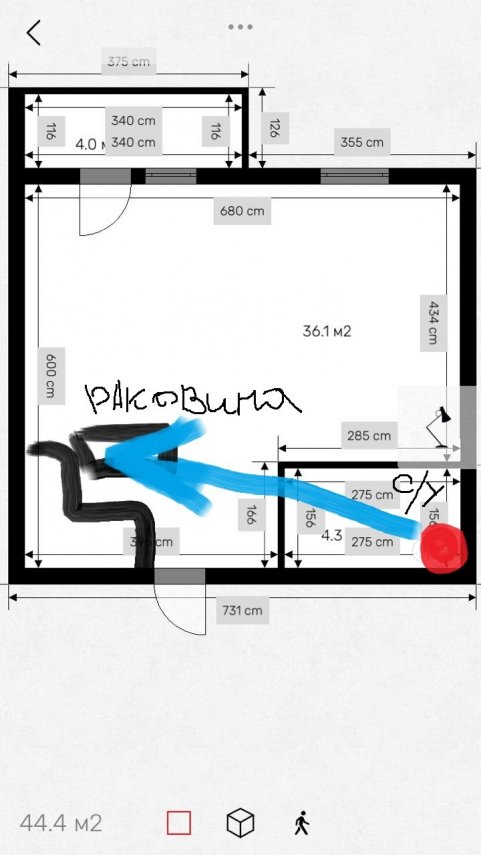 5. Здравствуйте. Подскажите как лучше сделать,разместить?хочу из кухни сделать спальню, а из комнаты гостиную с кухней.балкон пока не трогаю, не знаю как утеплить, застеклен однокамерным стеклопакетом во весь рост. 5 этаж...