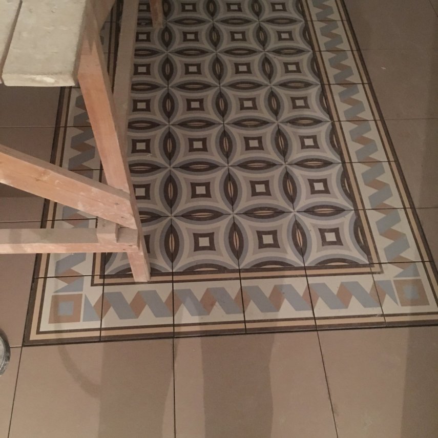 1. Добрый день! Вопрос к профессионалам: придумала совместить на полу два разных вида плитки(производители, коллекции-все не в масть). Знаю, что сам дурак, но так уж вышло... Работы выполнили, в результате, между декоративным ковром и основной плиткой образовался шов(ров)) шириной 13 мм, 7мм и 5 мм...
