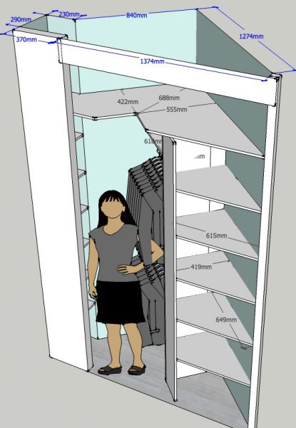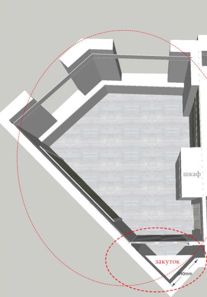 4. Добрый день всем) Назрел очередной вопрос, по поводу которого хотелось бы услышать рекомендации со стороны... В общем, в нестандартной пятиугольной спальне есть закуток в углу, который хотелось бы закрыть зеркальными дверями-купе и организовать место хранения. Также в этой комнате будет обычный встроенный шкаф (100 ...