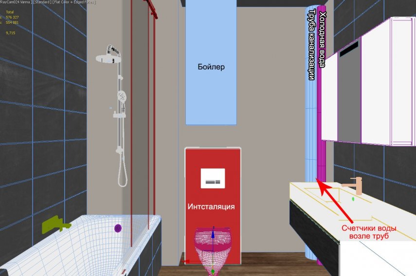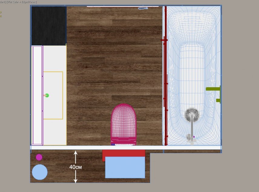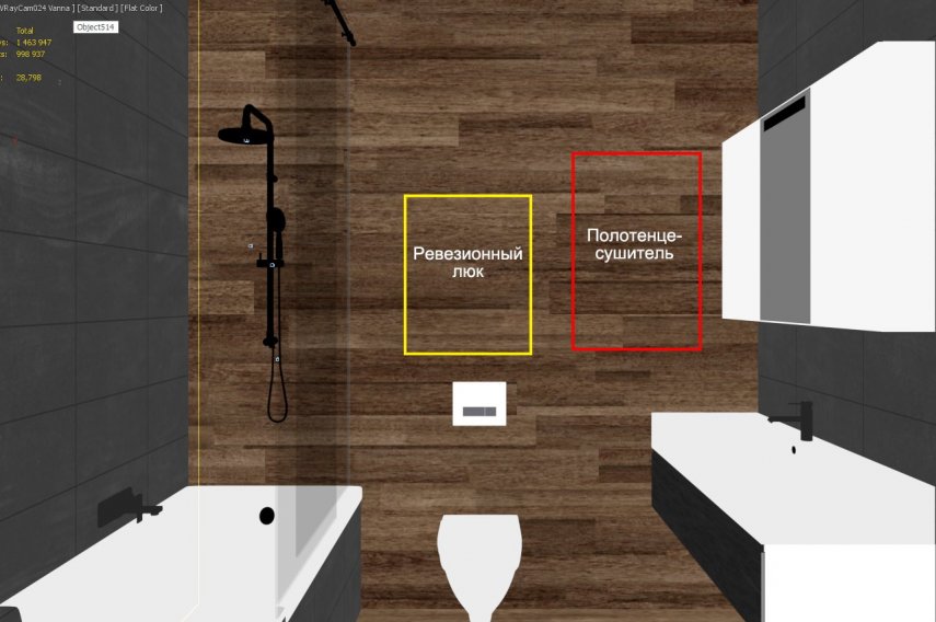 3. Здравствуйте, затеяли ремонт в ванной, возник вопрос куда расположить электрический полотенцесушитель и ревизионный люк. Так как над ванной размещать полотенцесушитель нельзя, единственное место куда его можно поставить вот здесь. За стенкой планируется расположить бойлер, инсталляцию для унитаза, счетчики и прочие коммуникации: Собственно вопрос - на...
