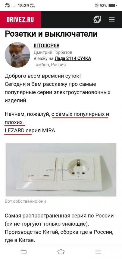 6. Не правда ли, странное название для раздела "электрика"? Но речь тут пойдёт именно про электрику. Нестерпимое желание возбухнуть возникло после комментов товарища о розетках. Он собрался ставить дома и обратился за советом - что лучше из доступных в местных магазах? Я посоветовал Лезард. На то имеются основания. Лет 12...