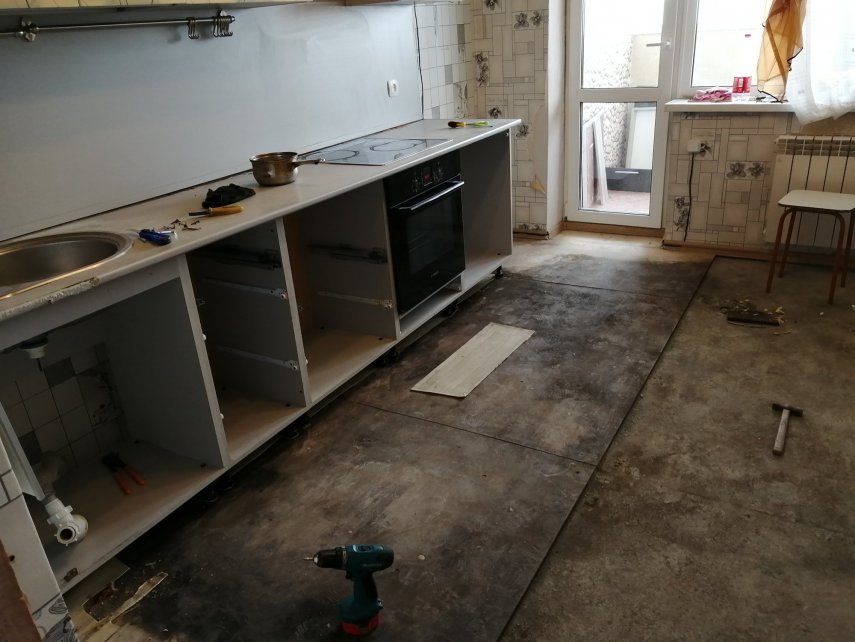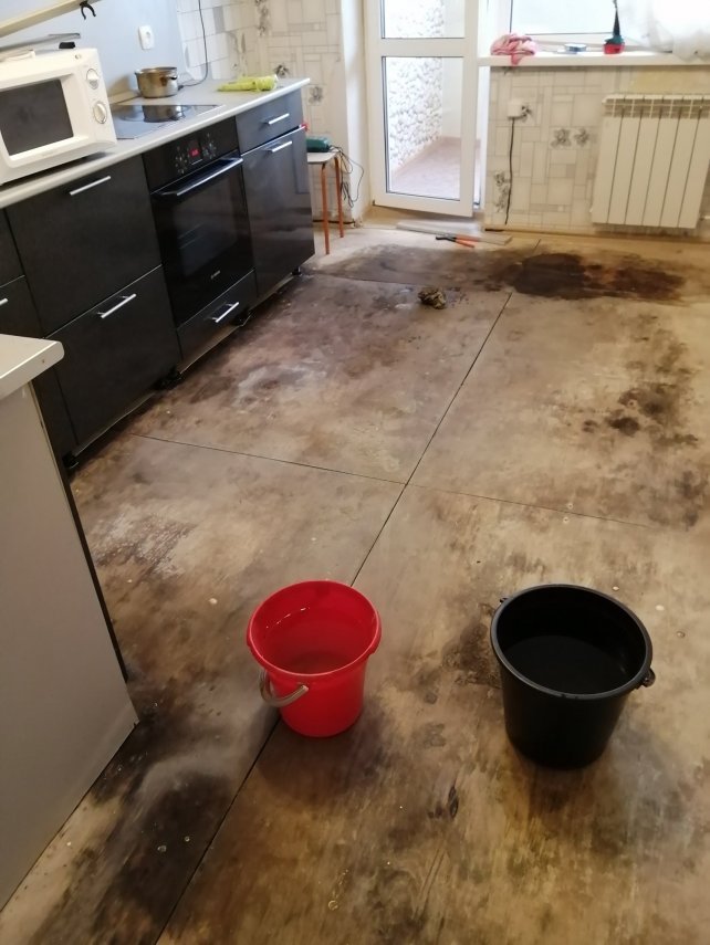 1. Здравствуйте. Купили квартиру, пол бетонный, далее фанера и линолеум. Начали разбирать пол, на кухне и комнате. Оказалось, что фанера на кухне гнилая насквозь, и в одной из комнат такое же... Убрали эту фанеру, обработали пол антисептиком. Решили постелить новую фанеру (тоже обработанну...