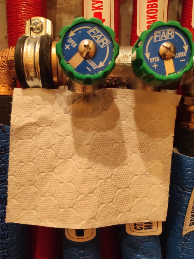 1. Всём привет. Вопрос такой: сделали новую разводку труб rehau. Гребёнка фар. В мечтах соединения хвс текут фитинги. Вроде подтянули всё равно если приложить бумагу, то мокнет. Подскажите что делать? И в чем проблема вообще? Или же просто оставить и затянется. Горячая не мокнет, мокнет только раз...