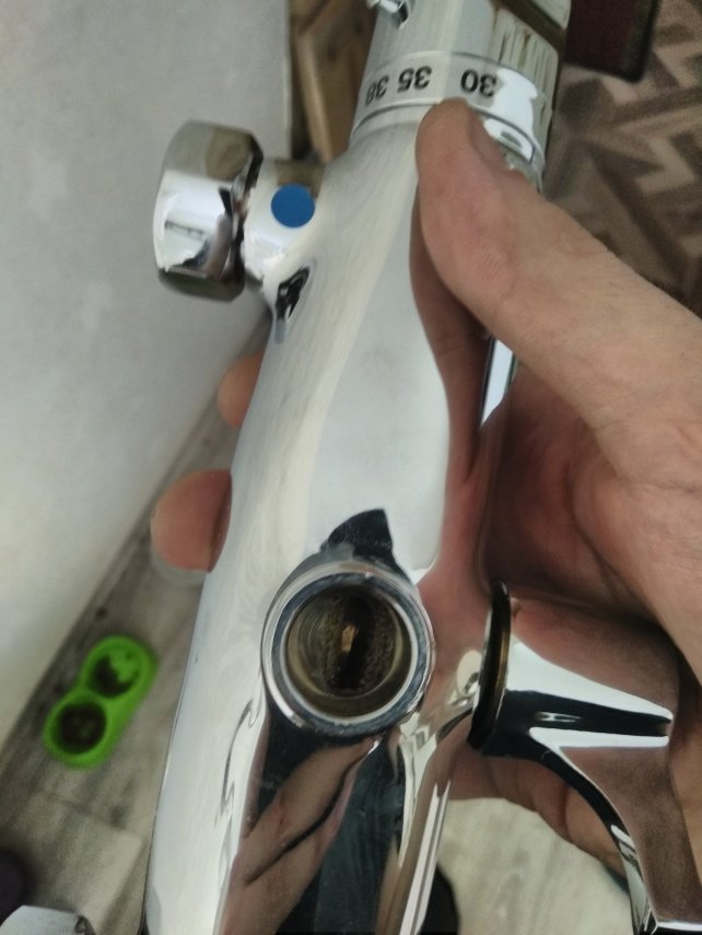 2. Купил смеситель. Все в коробочке, в пакетиках, не царапанный. А внутри - вот это. Поставил - на делении 30, течет по термометру 36.3, включаю на кухне холодную на максимум - термометр показывает 39. Включаю горячую на максимум - на термометре 35. ...