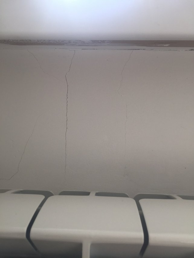 2. Здравствуйте. Хотела бы задать вопрос по поводу трещин в стенах дома. Дому около 10 лет, монолитно-каркасный. Трещины вертикальные внутри квартиры от потолка до пола в гостиной, в спальне обвалилась штукатурка(фото прилагаю), прежние владельцы чем-то замазали ее. Так же есть трещины около радиатора(и ...